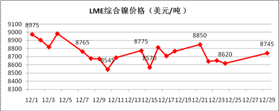 對(duì)于來(lái)年1月份走勢(shì)判斷,從技術(shù)面看,倫鎳在未站穩(wěn)8800美元/噸以上時(shí),市場(chǎng)仍舊存在下跌至8100美元/噸一線的風(fēng)險(xiǎn),甚至存在創(chuàng)新低的可能。從基本面看,倫鎳庫(kù)存依舊高位,表面看市場(chǎng)供應(yīng)繼續(xù)充足,但從中國(guó)進(jìn)口精煉鎳、鎳鐵的量來(lái)看,并未呈現(xiàn)繼續(xù)增加的態(tài)勢(shì),可見(jiàn)實(shí)際國(guó)外供應(yīng)量已基本接近現(xiàn)有峰值,國(guó)內(nèi)將進(jìn)入去庫(kù)存化周期,對(duì)于鎳市短期而言弱勢(shì)盤整是主流。